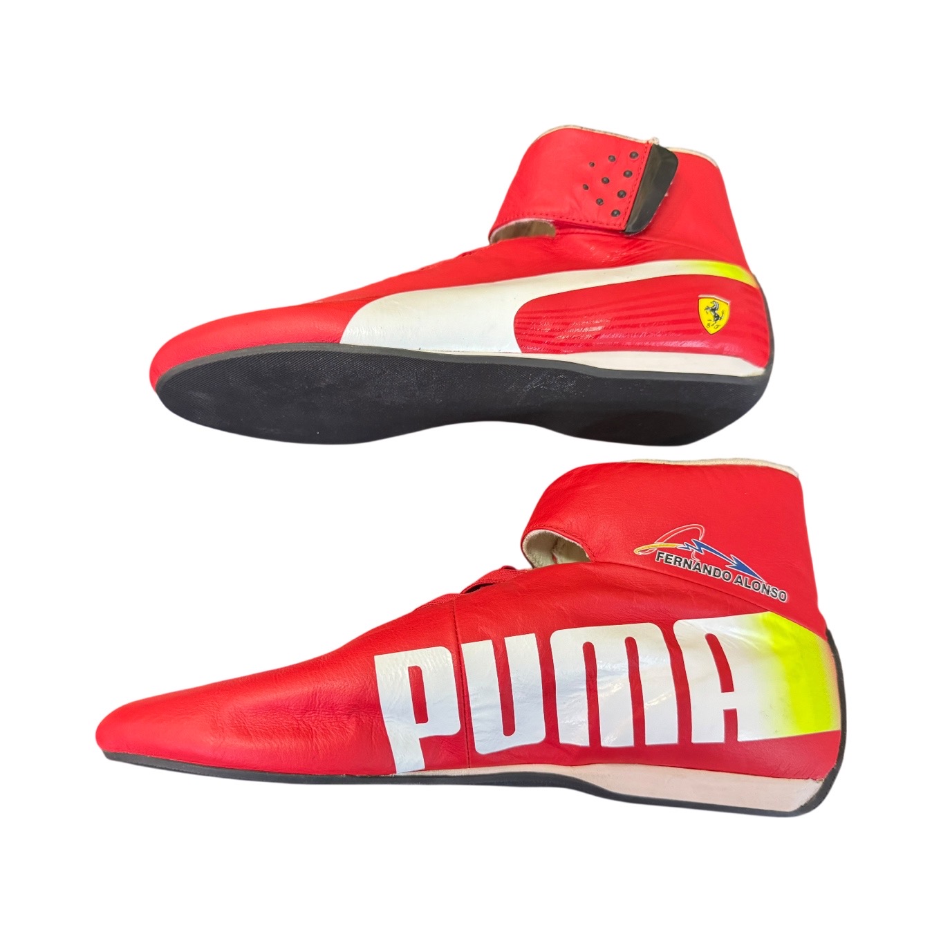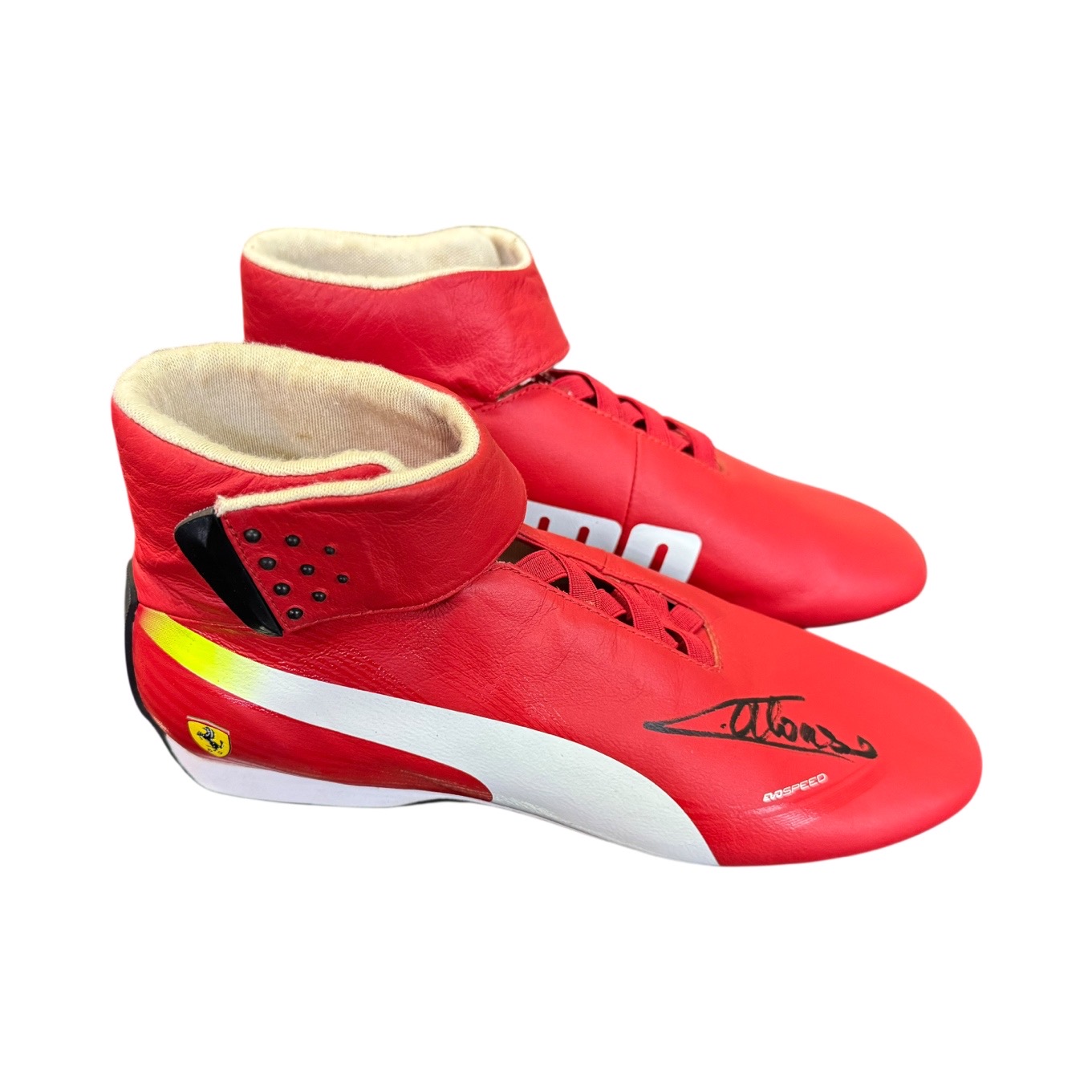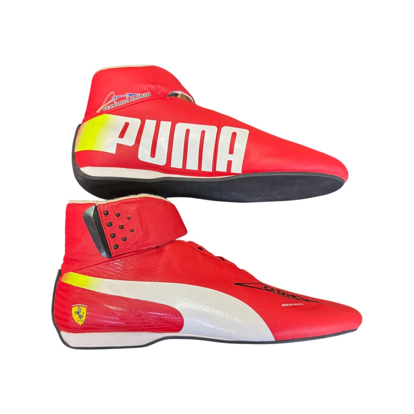 Scarpe da gara originali di Fernando Alonso, utilizzate durante la stagione 2013 di Formula Uno in occasione del Gran Premio di Monza.