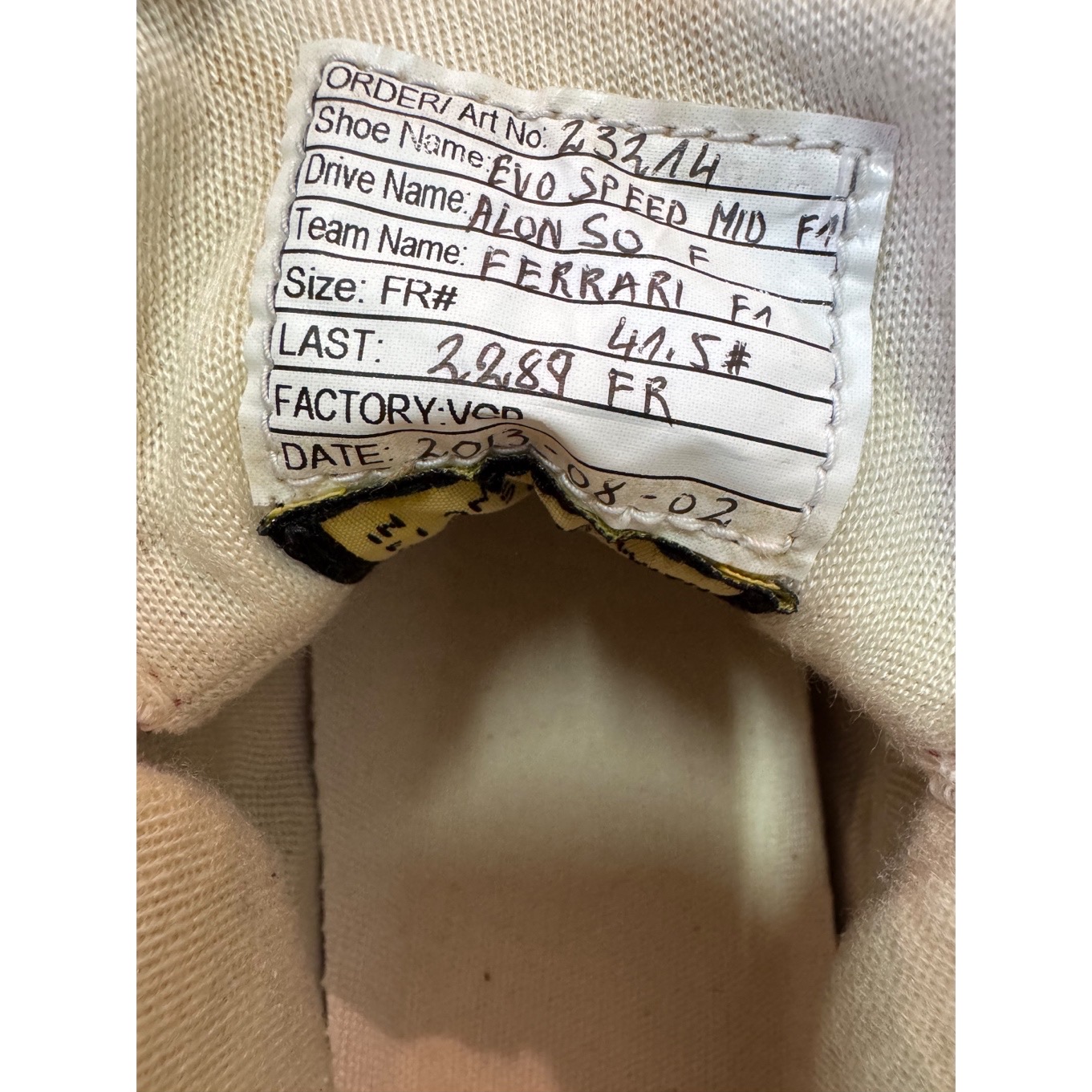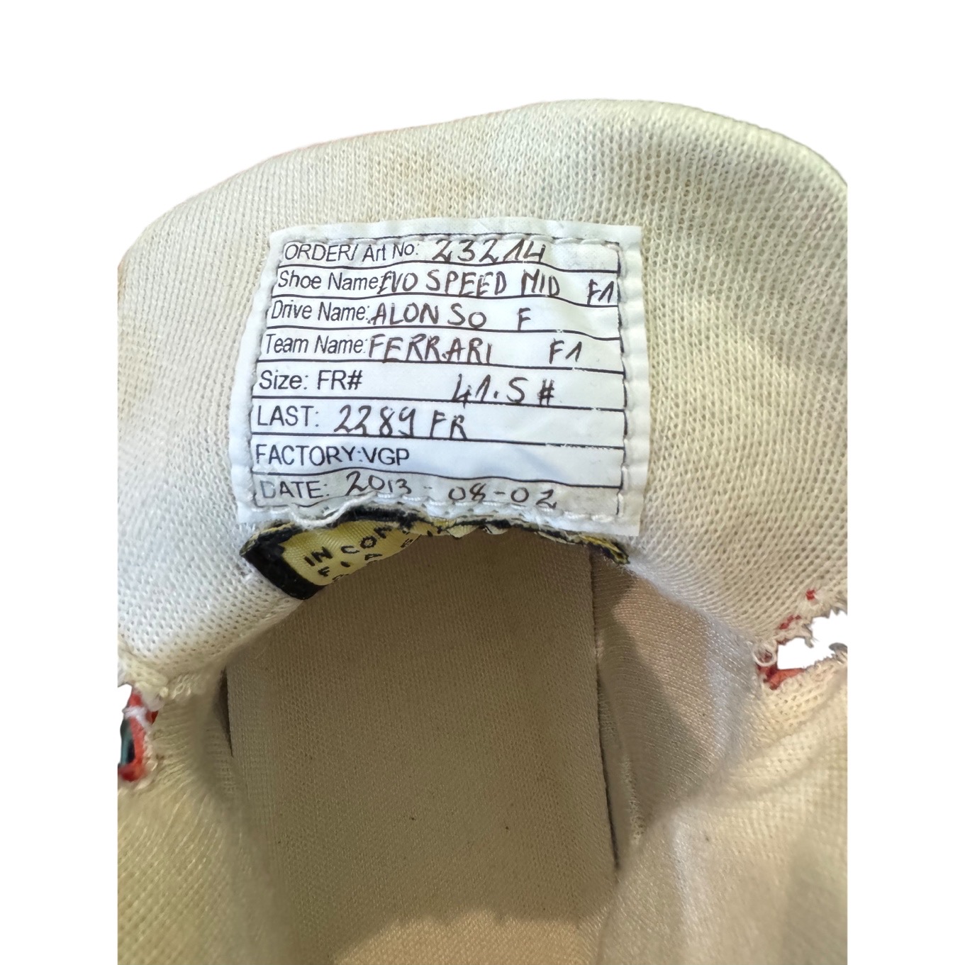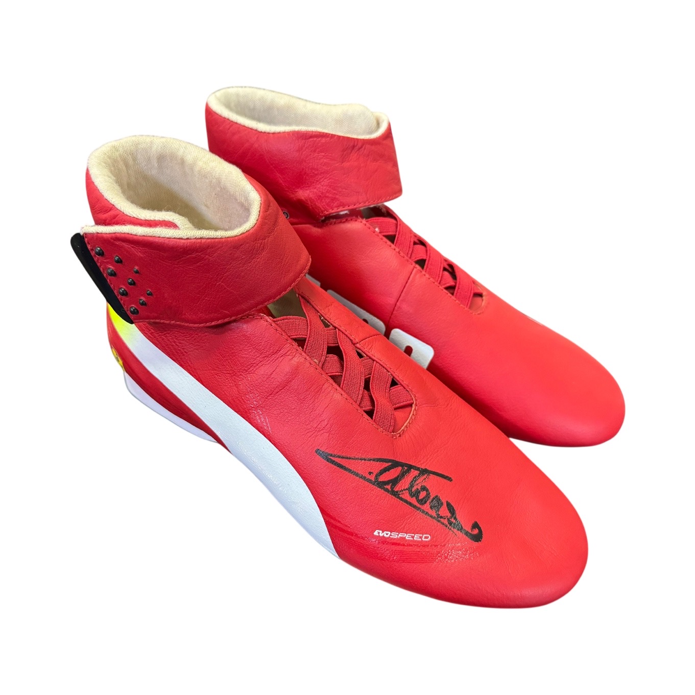 Scarpe da gara originali di Fernando Alonso, utilizzate durante la stagione 2013 di Formula Uno in occasione del Gran Premio di Monza.